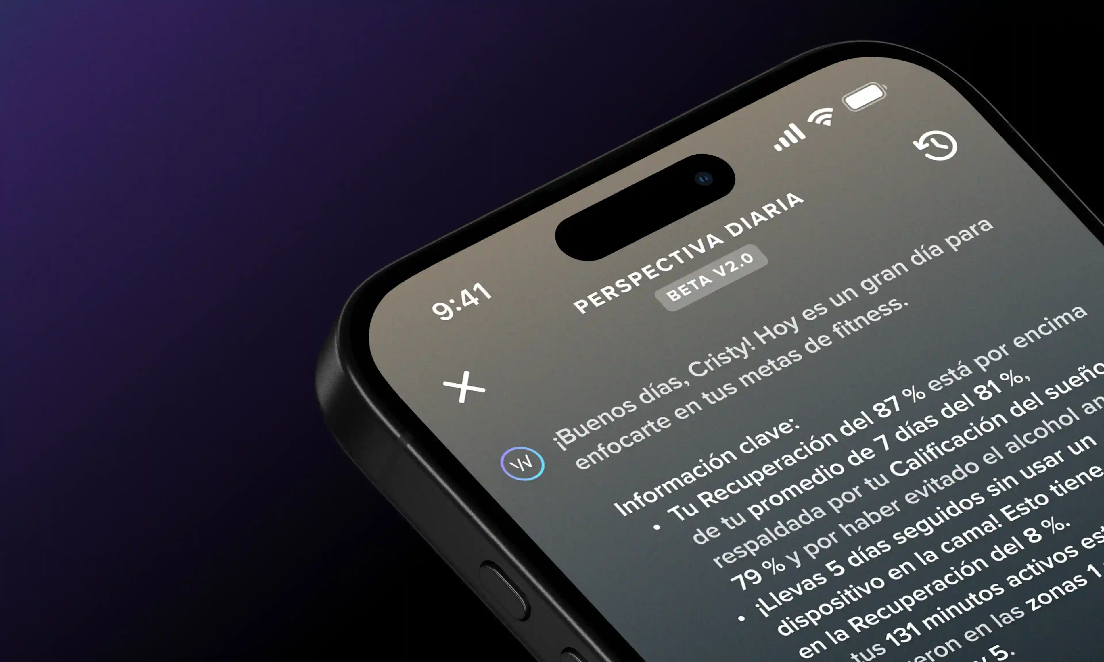 WHOOP siempre ha estado a la vanguardia de la tecnología, y ha usado el poder del aprendizaje automático para ayudar a sus miembros a sintetizar y comprender mejor sus datos. WHOOP Coach aprovecha los últimos avances en IA generativa para brindar una poderosa experiencia de coaching a demanda.