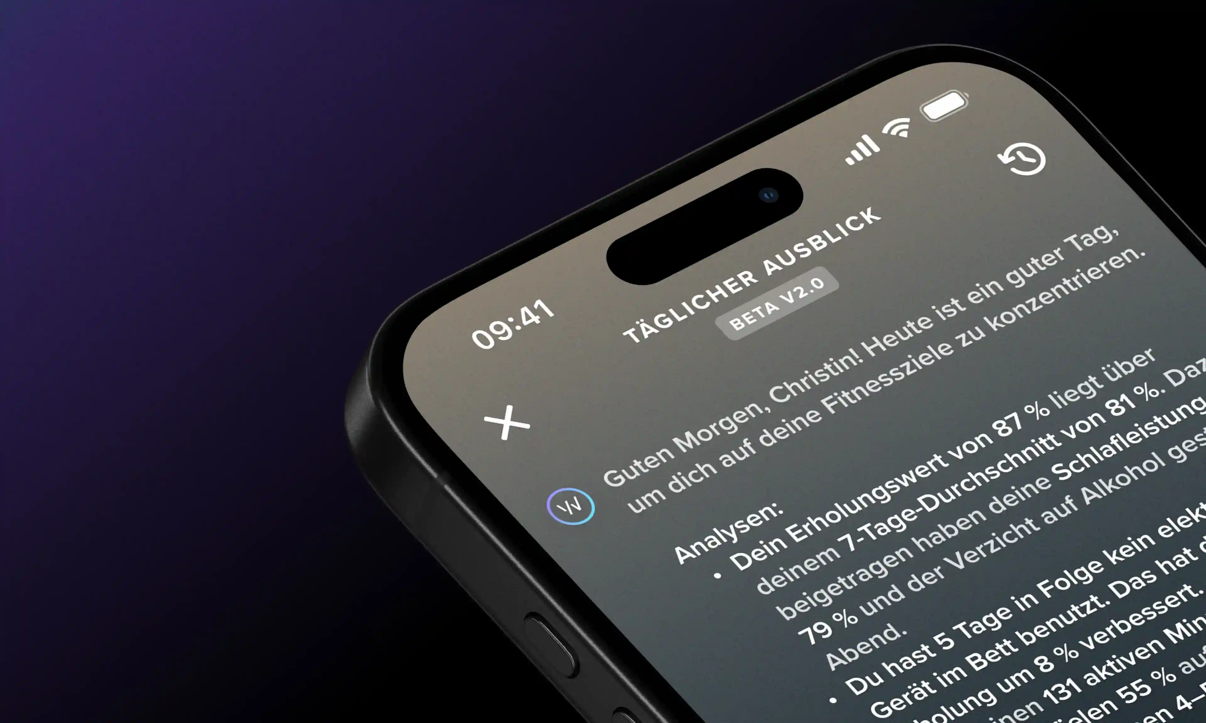 Als technologischer Vorreiter nutzt WHOOP schon lange die Möglichkeiten maschinellen Lernens, um erfasste Daten für Mitglieder verständlich aufzubereiten. Der WHOOP Coach macht sich die neuesten Fortschritte bei generativer KI zunutze, um dich noch individueller zu unterstützen.