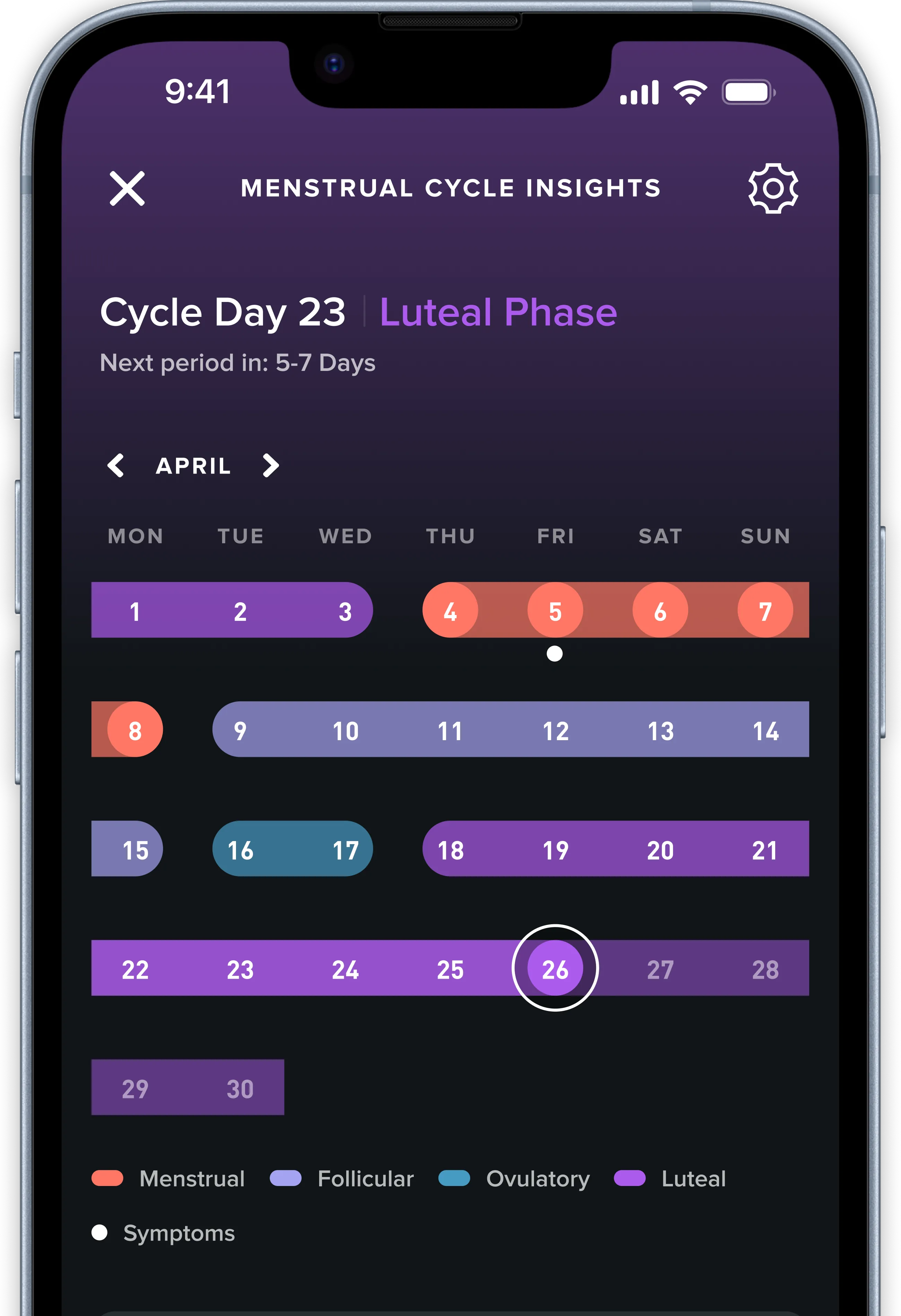 5. Women's Hormonal Insights: Menstrual Cycle Insights is not a medical device or medical advice and should not be used for conception or contraception. All phases, including the ovulatory phase, are estimates.