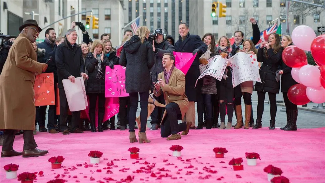 After selecting Todd’s application, the producers came to him with a few different options to surprise Mallory. Todd chose a plan which entailed Mallory taking their puppy Irving for a regular morning walk in a nearby park. Al Roker would then approach her on the street with the news that someone had an important question to ask her.